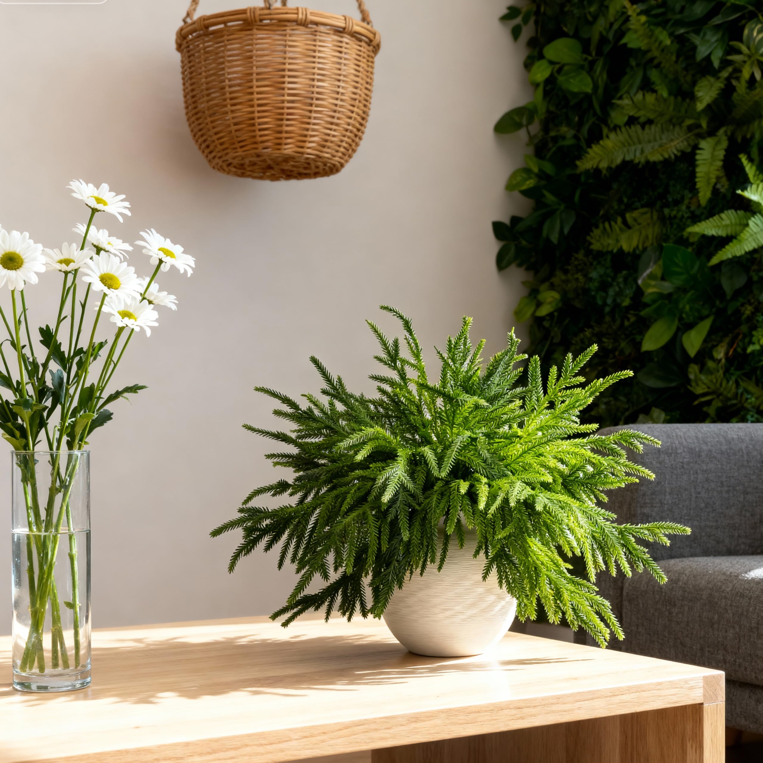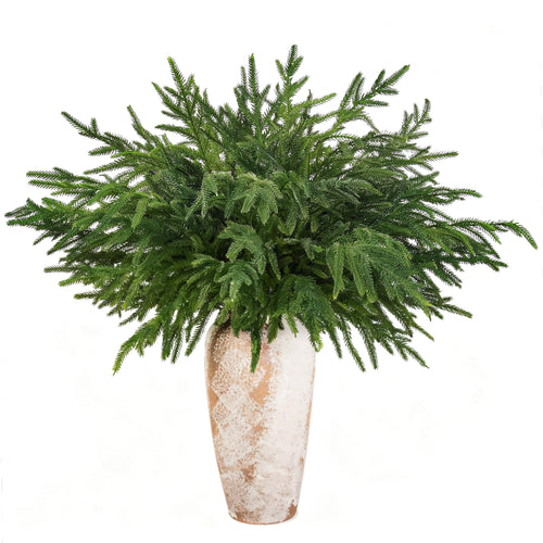 12 Pcs Norfolk Pine Branches, 18" Artificial Norfolk Pine Stems, Realistic Droopy Soft Bendable Pine Stems, Faux Greenery Stem for Vases Cedar Wreath Garland Christmas Home Decor, FF08