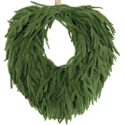 24" Norfolk Pine Wreath, Artificial Christmas Wreaths, Real Touch Green Winter Garland for Front Door Wall Window Indoor Outdoor Christmas Home Holiday Decor, FF13